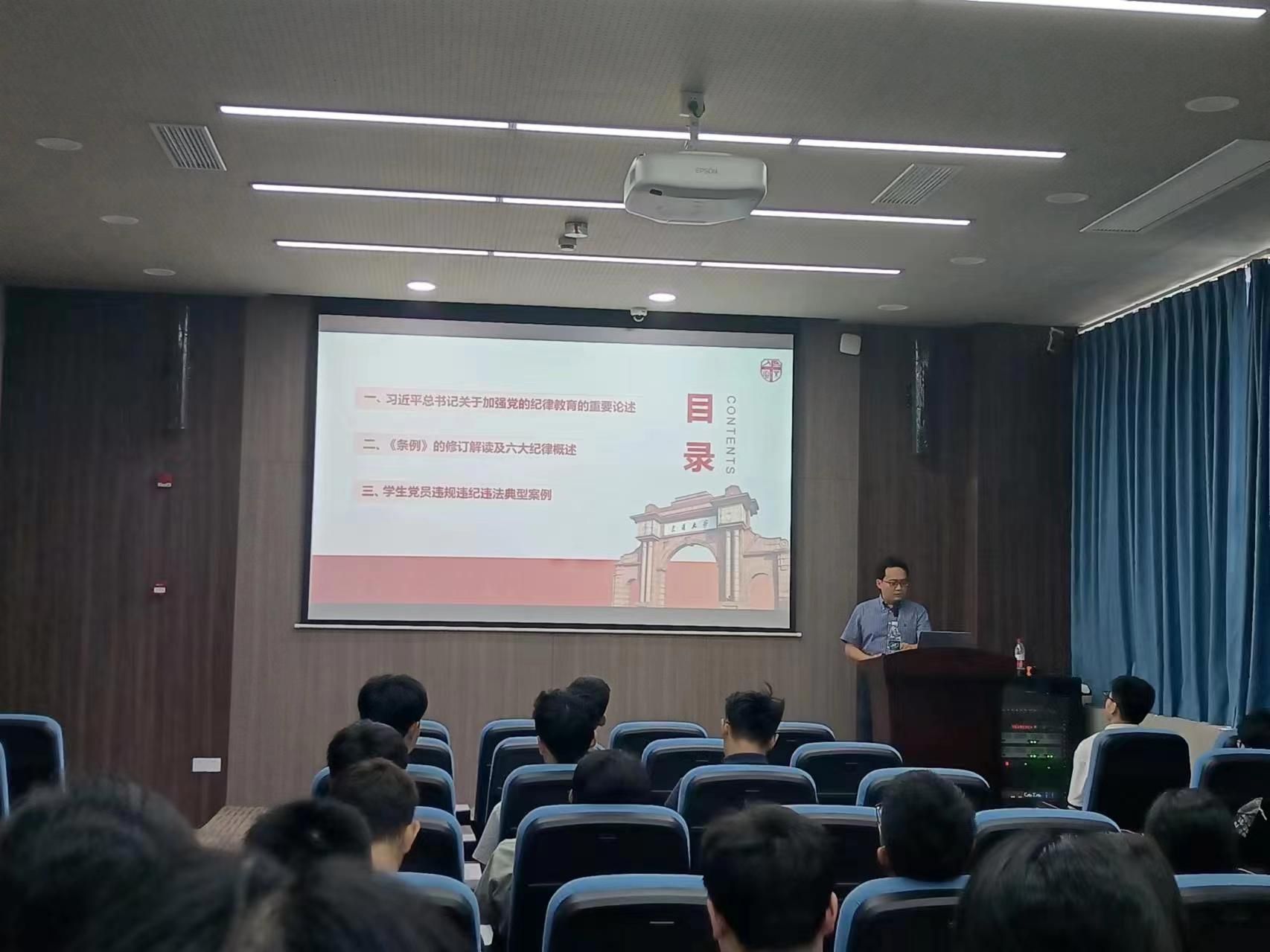6月24日,党支部于工业中心C座103教室举办了党纪学习教育专题党课。党课由学院党委委员高峰老师主讲,支部书记唐茂翔主持。高峰老师向支部党员同志们传达了习近平总书记关于党纪教育的论述,强调党员遵守党纪的必要性,并详细解读了修订的《中国共产党纪律处分条例》并辅以实际案例,深入剖析了学生党员违纪违法案例,警示党员同志们引以为戒,严于律己。与会党员纷纷表示,将以此次学习教育为契机,进一步加强自身党性修养,严格遵守党的纪律要求。