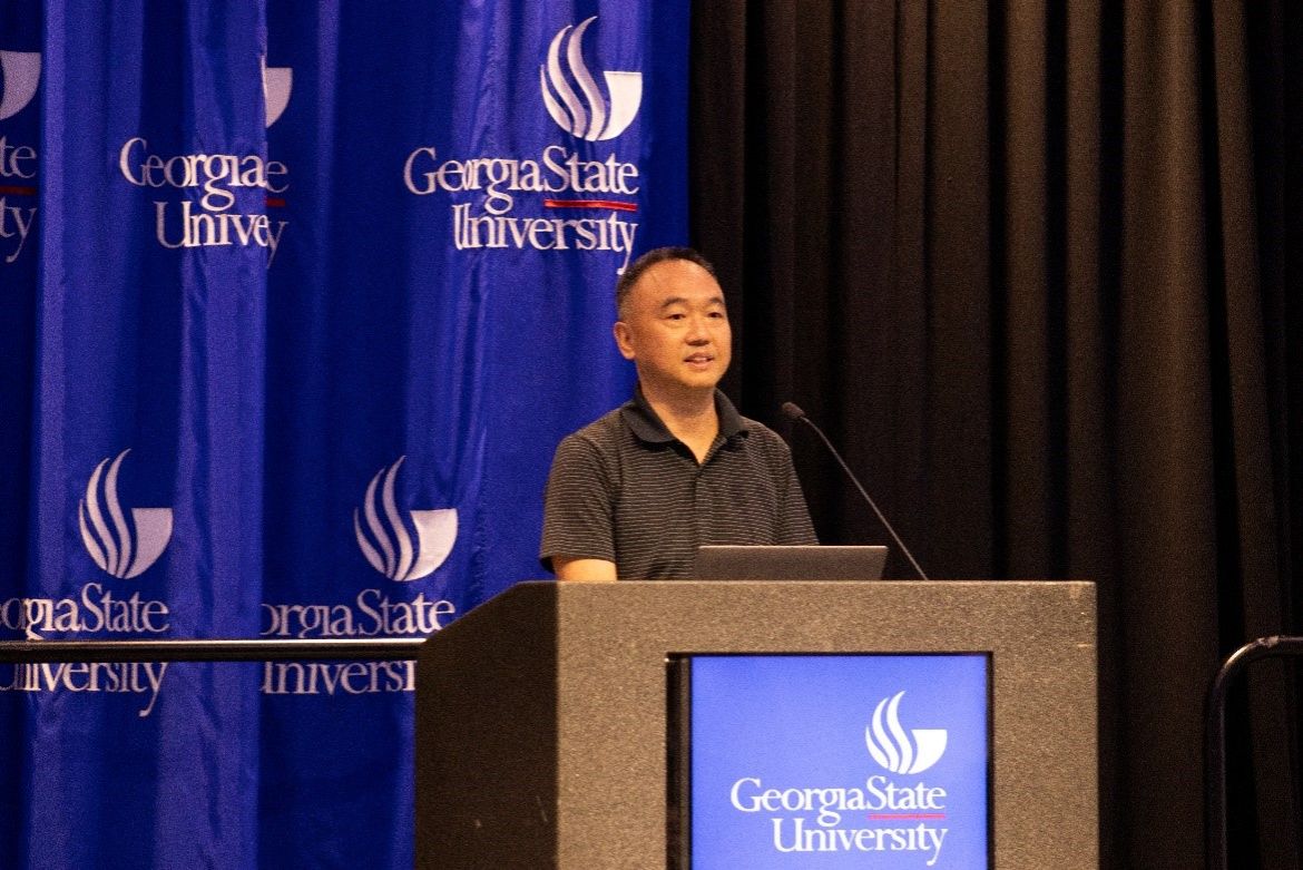 First of all, Prof. Tai of GSU Biology Department extended a warm welcome to everyone. Then Dr. Xianli Zhou, Dean of the School of Life Science and Engineering at SWJTU, took the stage to express his views and encouragement to everyone, and also expressed his regret for not coming to GSU for nearly ten years and his prospects for the future development of the project.