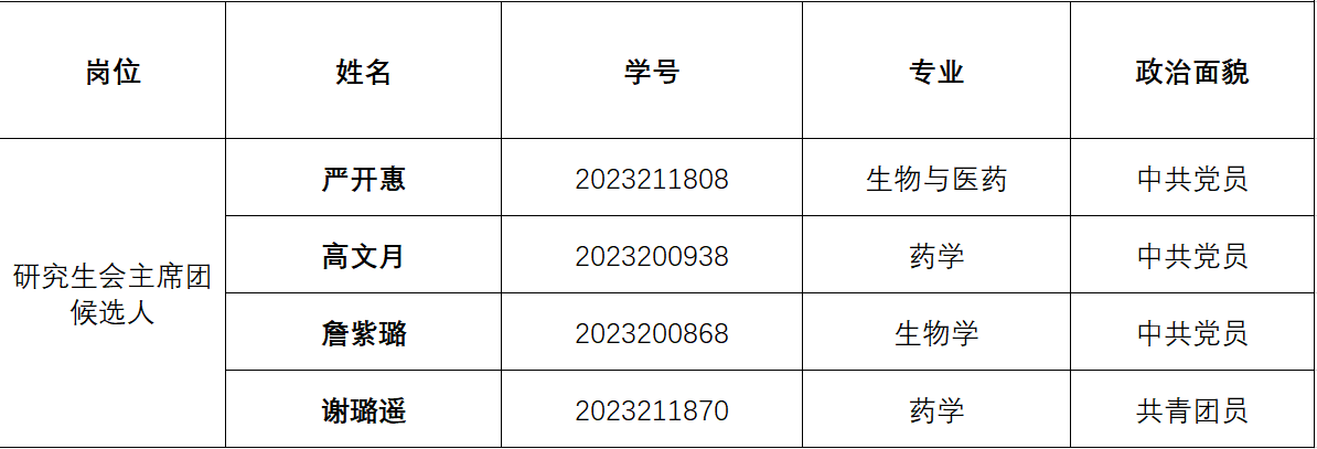 为进一步加强英国bat365官网登录入口研究生会建设,持续深化研究生会改革,根据《中共英国bat365官网登录入口委员会关于推进学生会(研究生会)深化改革的实施方案》(西交党〔2020〕40号)要求,经自主报名、资格审核、面试答辩等环节,综合考核评议确定学院第十一届研究生会主席团候选人,具体名单公示如下: