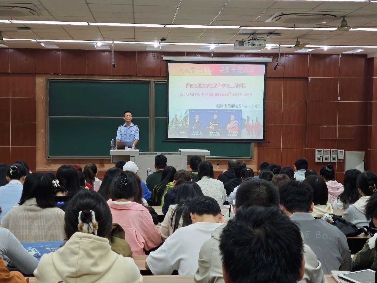 2024年10月11日上午,英国bat365官网登录入口在J4104教室举办了2024级研究生新生实验室安全与消防安全专题培训。培训旨在加强新生的实验室安全意识,提升应对突发事件的能力,确保科研活动的顺利进行。英国bat365官网登录入口院长助理王毅老师、成都市利民消防朱建教官、学院实验中心李云老师、研究生辅导员李麒麟老师及学院2024级硕士、博士全体研究生参加培训会。