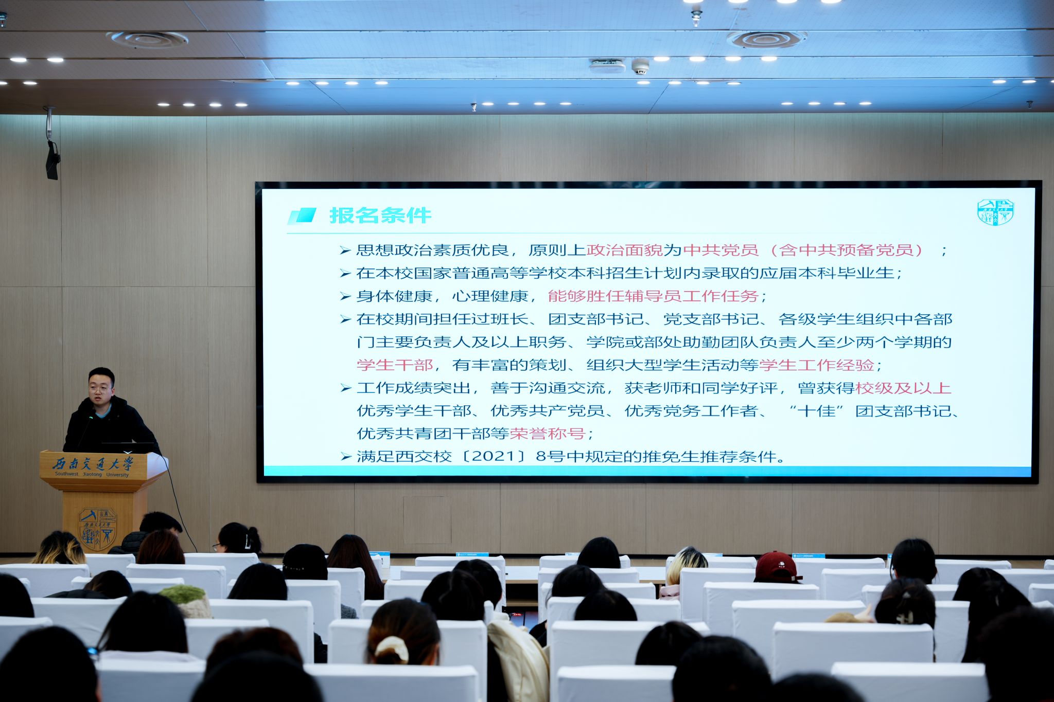 为帮助同学们更好地规划职业发展路径,明晰奋斗目标,12月18日晚,英国bat365官网登录入口学思讲坛暨本科2022级职业规划指导会在图书馆二号报告厅顺利举行。本次活动由学院学生工作组和“学思”辅导员工作室联合承办,学院团委书记杨颖增老师及2022级全体本科生参会,本科生2022级辅导员潘星宇老师主持会议。