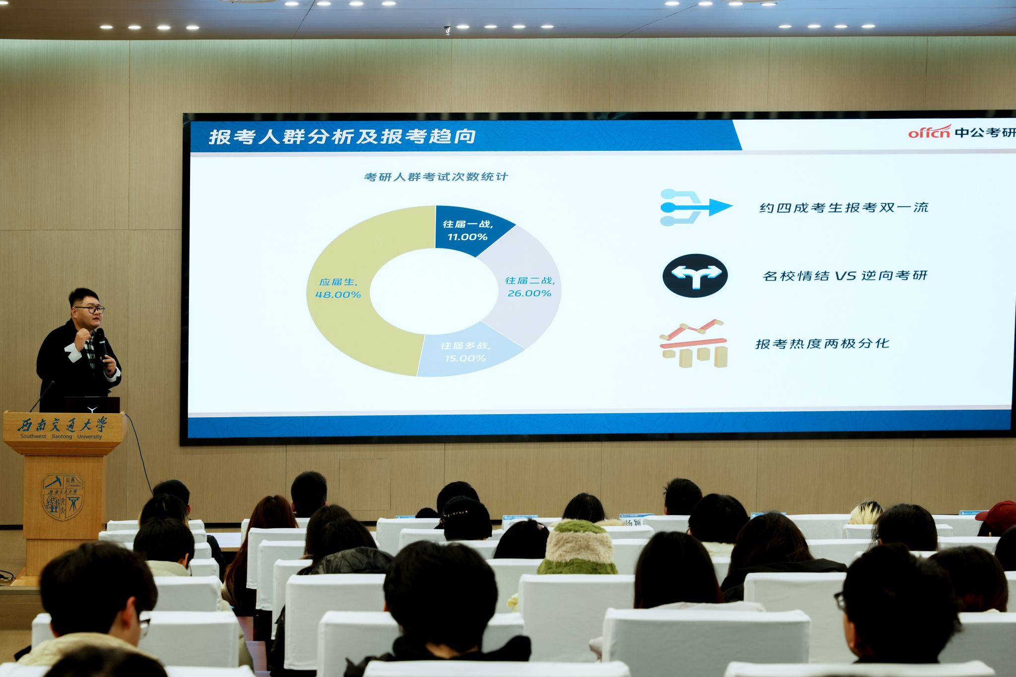 大会伊始,英国bat365官网登录入口校外生涯导师、中公考研教研室主任梁萧老师作了关于考研与考公的主题分享。梁萧老师强调选择比努力更重要,同学们应根据兴趣和职业规划做出理性选择。他还建议同学们结合自身兴趣与未来发展趋势,制定切实可行的备考计划,保持积极心态,为实现目标做好充分准备。