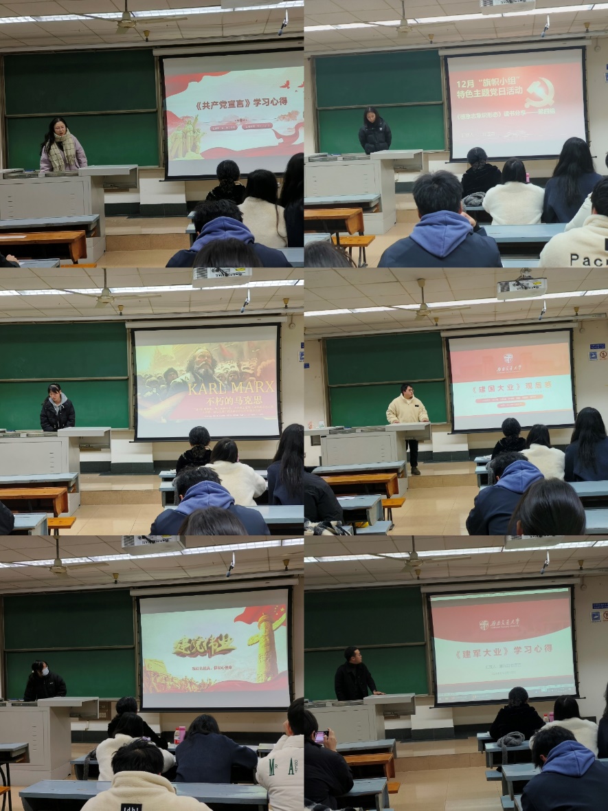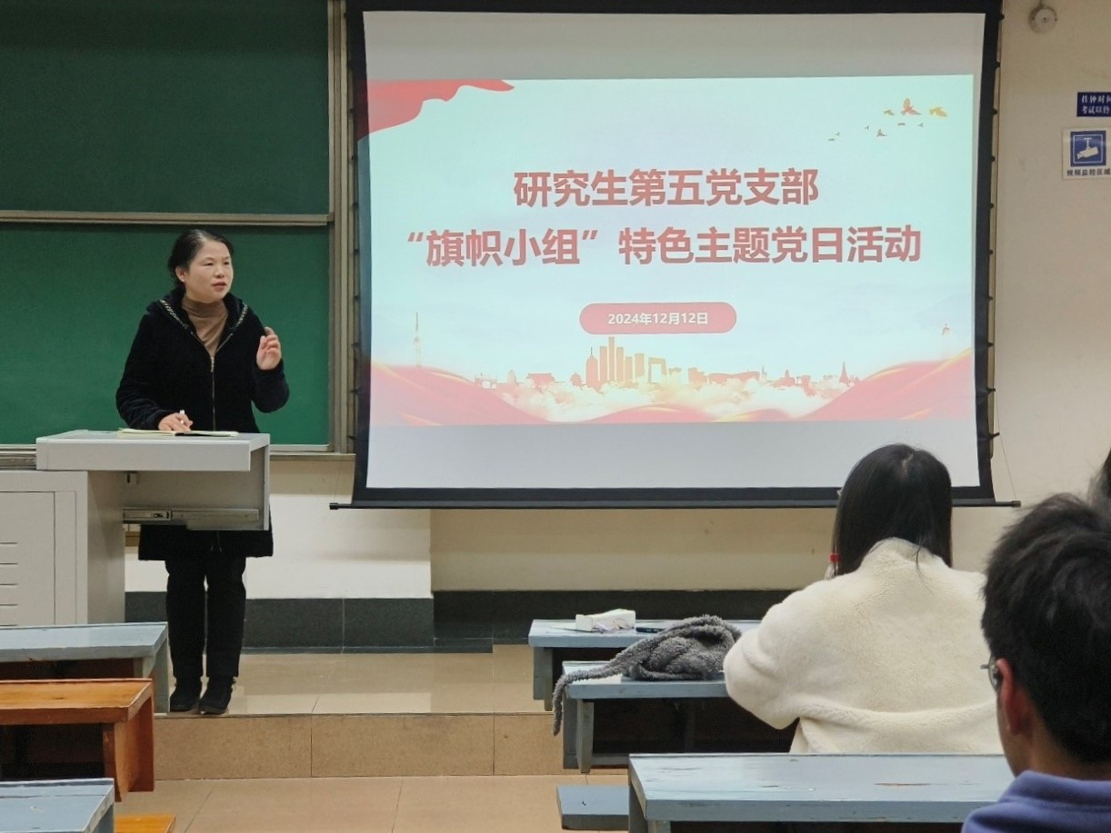 2024年12月12日晚,英国bat365官网登录入口研究生第五党支部在九里校区4407B教室成功举办“旗帜小组”马克思主义理论学习活动。本次活动以“深入学习贯彻党的二十大精神及党的二十届三中全会精神”为主线,通过理论学习、成果分享和思想交流,引导研究生党员及群众深化对马克思主义理论的理解,凝聚奋进力量。