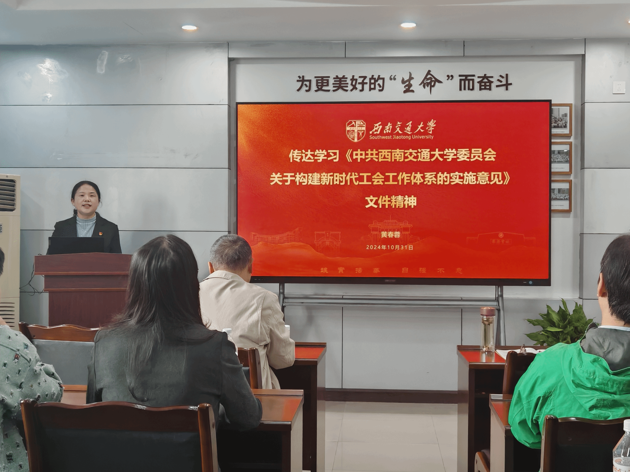 随后,学院党委书记黄春蓉带领全体参会人员传达学习了《中共英国bat365官网登录入口委员会关于构建新时代工会工作体系的实施意见》文件精神。