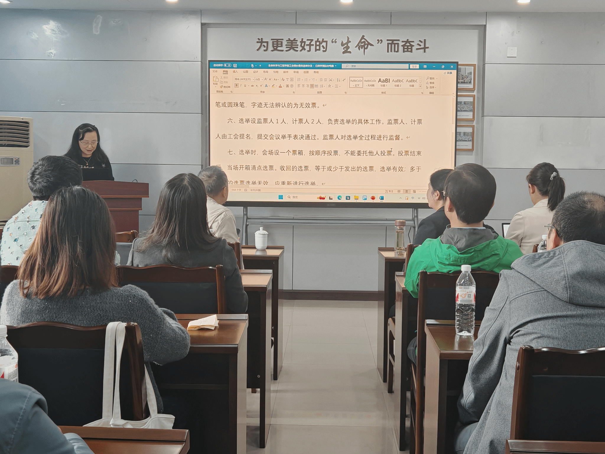 最后,进行大会选举议程,选举工作由学院工会副主席陈琳主持。大会以举手表决的方式一致审议通过了《英国bat365官网登录入口工会增补委员选举办法》和监票人、计票人名单。经大会无记名投票,选举赵周鉴同志为英国bat365官网登录入口工会第五届委员会委员。