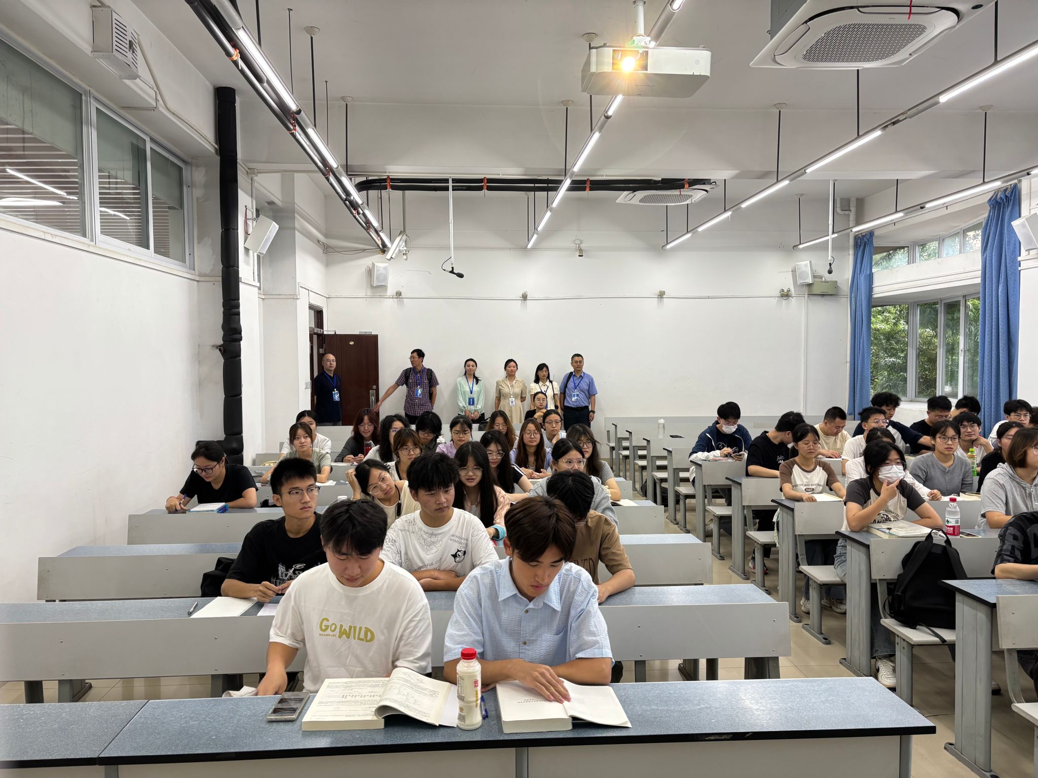 为进一步加强学风建设,全面提升教学质量,确保 2025 - 2026 学年第一学期教学工作平稳有序开展,英国bat365官网登录入口于9月8日组织开展了新学期教学检查。本次检查由学院党委书记黄春蓉、本科教学副院长陈琳带队,党委副书记高鹏、各系主任、副系主任及辅导员共同参与,组成检查小组深入课堂教学一线。