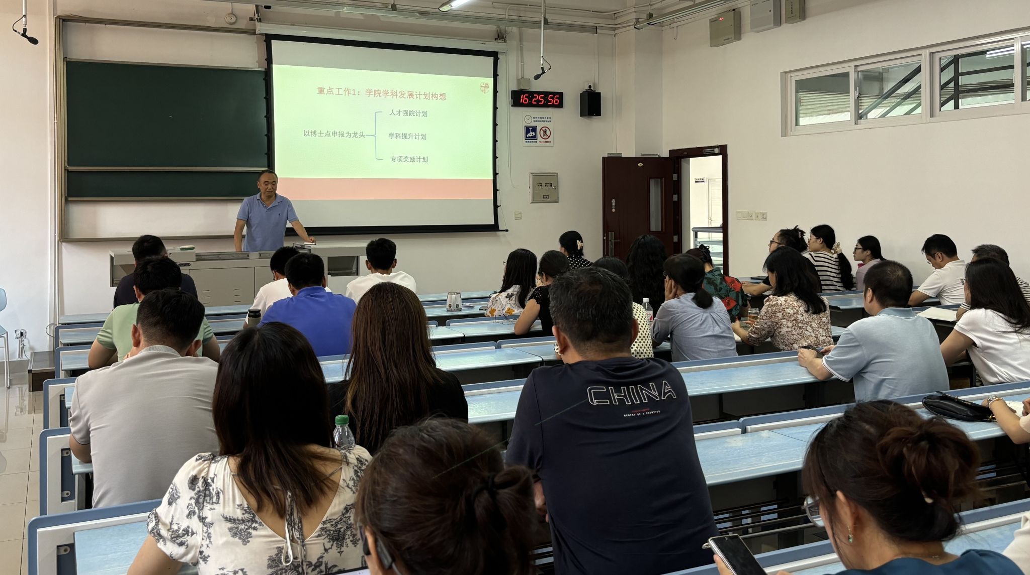 周先礼院长介绍了学院本学期的重点工作。他强调学院要聚焦学校“生医特色拓展”的发展目标,以博士点申报建设为龙头工作,凝练学科方向,牵引学院高质量发展。学院针对师资队伍建设、学科提升等重点难点环节制定相关政策,以教学成果奖和科研成果奖为突破口,建设英国bat365官网标志性成果库,加强博士后队伍建设,拓宽人才师资引进渠,用好绩效分配指挥棒,激励教职工为学院学科建设贡献力量。
