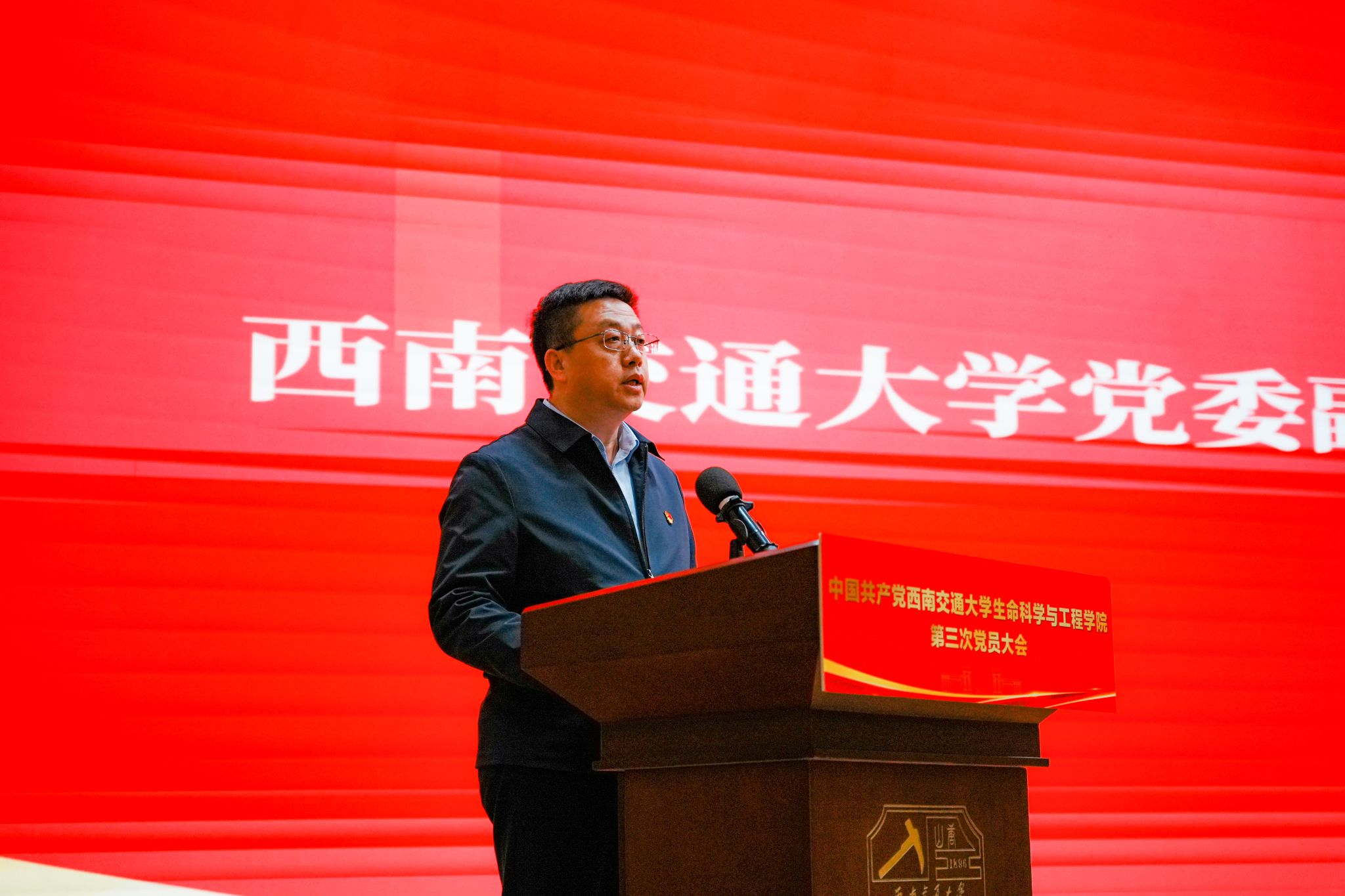 下午 14 时 30 分,英国bat365官网登录入口第三次党员大会在庄严的国歌声中拉开序幕。夏玉峰代表学校党委向大会的召开表示热烈祝贺,向全体党员表示亲切问候。他充分肯定了英国bat365官网登录入口第二次党员大会以来在学科建设、师资队伍培养、科研成果产出以及人才培养模式创新等方面所取得的工作成绩。他指出,这些成绩的取得离不开学院全体师生的共同努力和党员同志的先锋模范作用,是学院团结奋进、积极进取的有力彰显。同时,夏玉峰书记也对学院全体党员师生提出了几点希望:一是旗帜鲜明讲政治,深入学习领会习近平新时代中国特色社会主义思想的核心要义、精神实质、丰富内涵、实践要求,进一步提高政治站位,将讲政治的要求融入工作学习全过程各方面,在思想上、行动上始终同党中央保持高度一致;二是坚定理想信念,始终牢固树立共产主义远大理想和中国特色社会主义共同理想,教师党员争做立德树人、教书育人的表率,学生党员争做理想远大、担当奋斗的表率;三是坚持党建引领,进一步发挥党支部战斗堡垒作用和党员先锋模范作用,增强学院党委的政治功能和组织功能,统筹推进教育科技人才体制机制一体化改革,扎实推进“一融双高”,以高质量党建引领学院高质量发展;四是坚持全面从严治党,全面落实学院党委主体责任和学院纪委监督责任,严明政治纪律和政治规矩,深入推进党风廉政建设和反腐败斗争,为推动学院建设发展提供坚强政治纪律保障。希望新一届委员会在学校党委的坚强领导下,以习近平新时代中国特色社会主义思想和党的二十大精神为指引,全面贯彻落实党的教育方针和习近平总书记关于教育的重要论述,团结带领全院师生,依托学校交通特色,进一步明确学院发展方向,加强学科专业建设,大力弘扬优秀传统文化,凝心聚力,乘势而上,开启高水平英国bat365官网登录入口建设新征程。