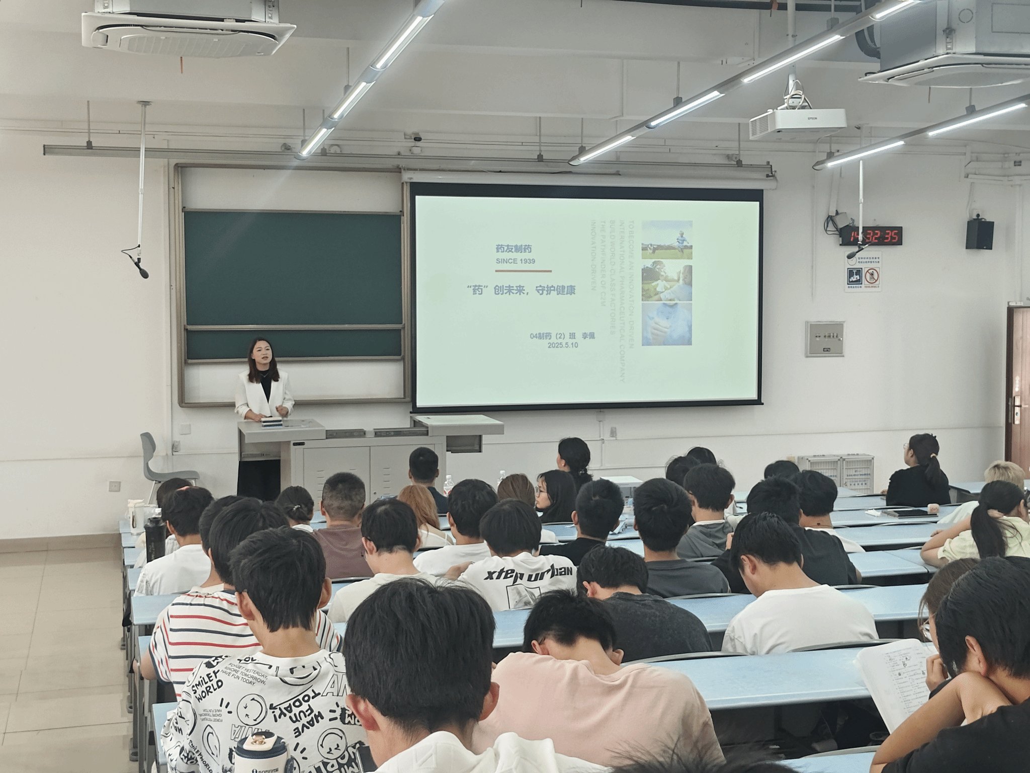 为帮助在校学生深入了解医药行业动态,明晰职业发展方向,激励青年学子以专业能力服务国家大健康战略,特邀重庆药友制药有限责任公司广东省地区经理、学校青年讲师团成员、2008届校友李佩以“药创未来·守护健康”为题做经验分享。李佩校友结合自身十余年从业经验,从医药全产业链、行业政策环境、市场趋势及职业方向细分等维度展开分享,并阐述了研发、生产、营销等岗位的核心能力要求,建议同学们在校期间夯实专业基础,关注行业动态,通过实习实践提升综合能力,注重“专业深耕与终身学习”。