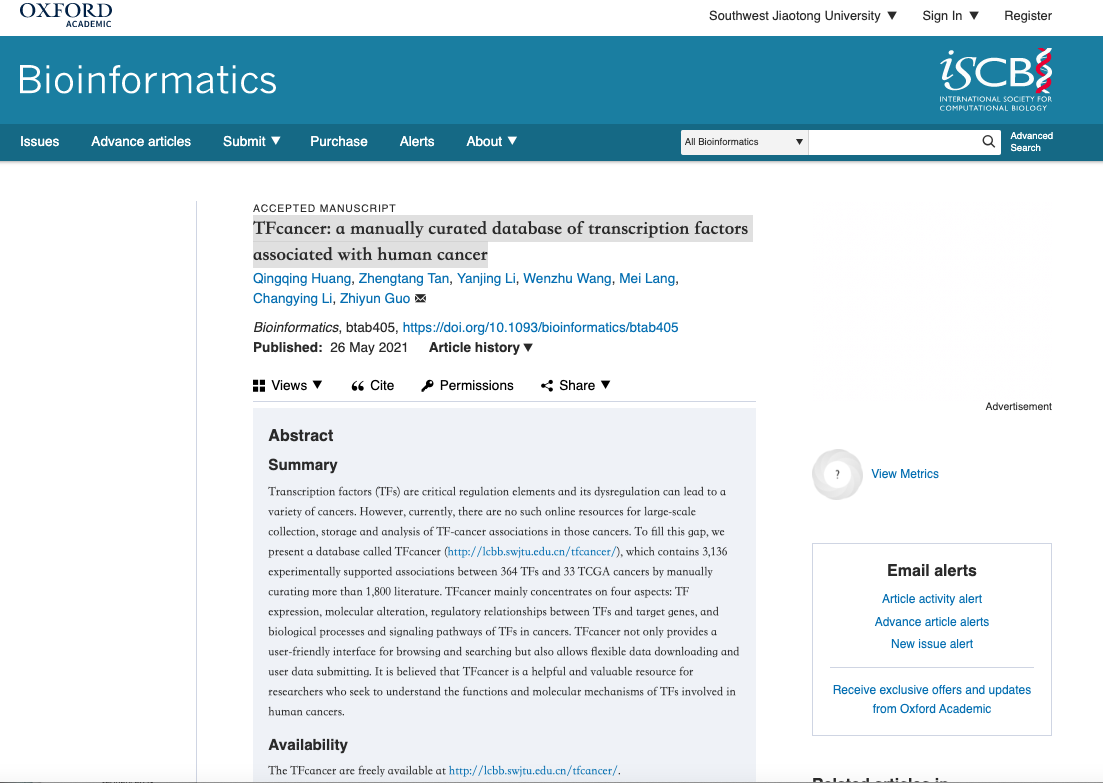 我校英国bat365官网登录入口郭志云课题组在生物信息学顶级期刊《Bioinformatics》上发表高水平论文